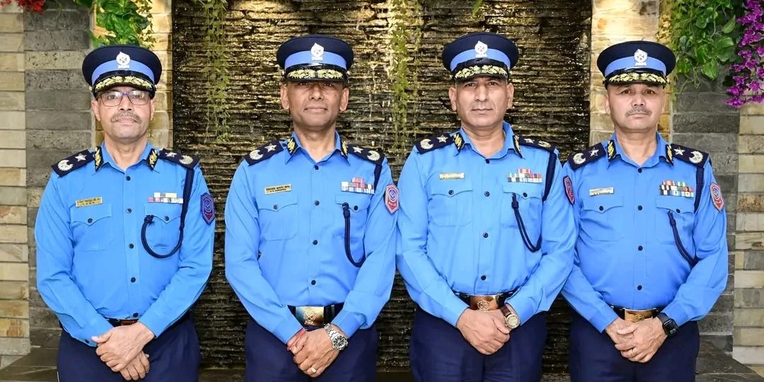 काठमाडौं । नेपाल प्रहरीका महानिरीक्षक (आईजीपी) चन्द्र कुबेर खापुङ्गले शुक्रबार प्रहरी प्रधान कार्यालयमा आयोजित समारोहबीच चार जना प्रहरी अधिकृतलाई अतिरिक्त महानिरीक्षक (एआईजी) पदमा दर्ज्यानी चिन्हद्वारा सुशोभन गर्नुभएको छ।